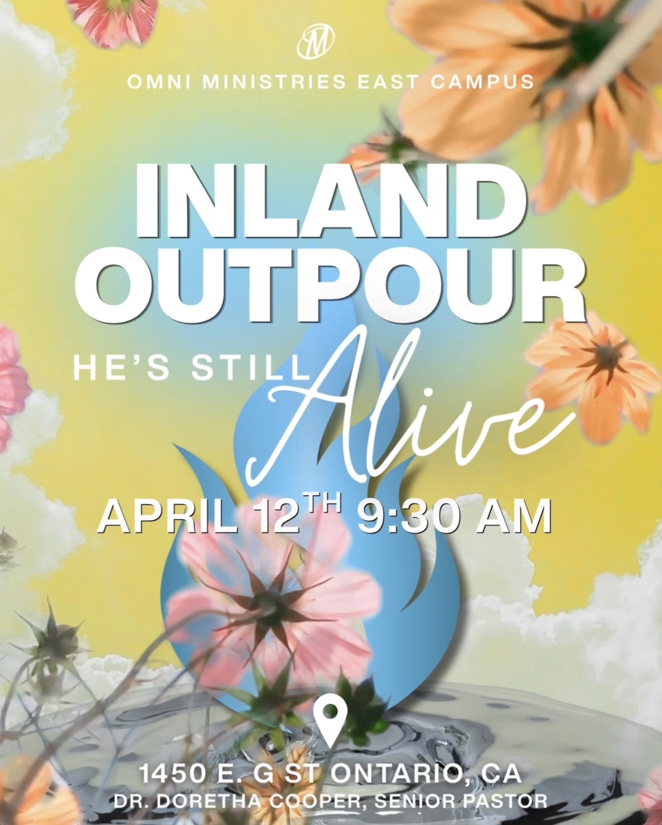 Join us for a powerful move of God at Inland Outpour: He’s Still Alive on April 12th at 9:30 a.m. at Omni Ministries East Campus. This dynamic gathering is a time to encounter the presence of God through passionate worship, prayer, and a life-changing word that reminds us Jesus is still alive and moving today. Come expecting renewal, breakthrough, and a fresh outpouring as we gather in faith and unity. The service will be held at 1450 E. G Street, Ontario, CA. All are welcome to experience this impactful and spirit-filled event.